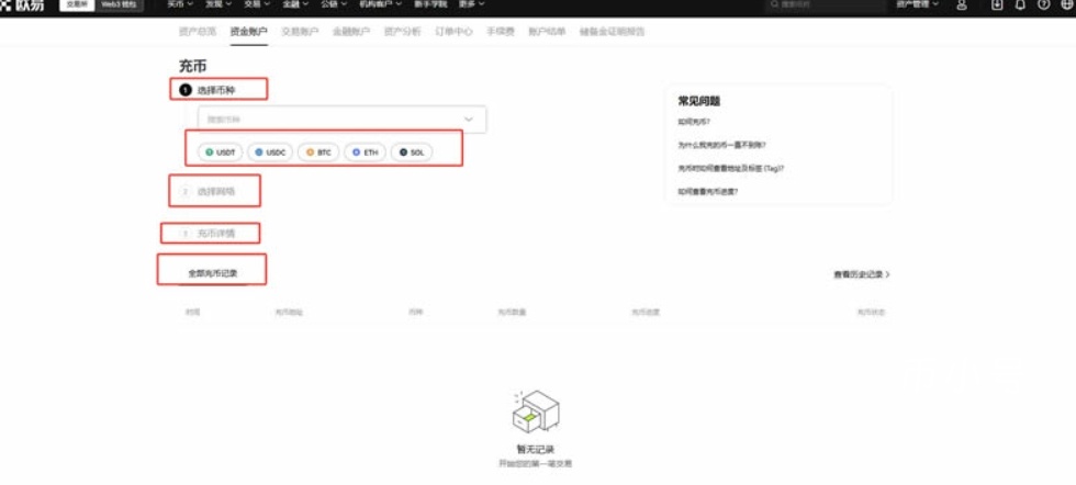 登录交易所账号后,在页面顶部导航栏点击「充币」或「买币」入口,进入资金充值页面。